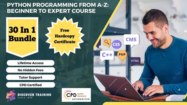 Industry professionals developed the content of this online Python Programming From A-Z: Beginner To Expert course, combining their expertise and in-depth knowledge. The curriculum was developed by Discover Training to assist you in growing in your current role by providing you with the necessary information and concepts. As you progress through the modules of this course, you’ll learn the fundamentals of Python Programming From A-Z: Beginner To Expert Course and explore the essential concepts